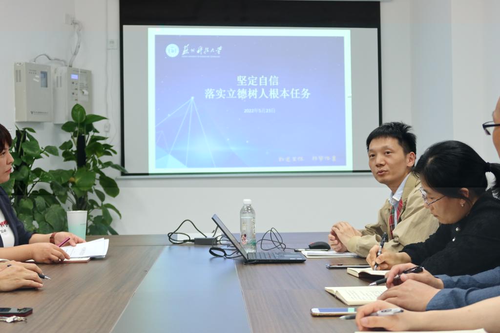 5月23日下午,利记SBOBET官网APP黨總支開展了“黨建工作坊”之意識形态工作專題培訓暨意識形态工作研判會。會議由學院黨總支書記和潔主持,全體班子成員、各辦公室主任、黨支部書記、内設機構負責人、群團組織負責人參加了培訓。校黨委宣傳部副部長劉文受邀作專題報告《堅定自信,落實立德樹人根本任務》。