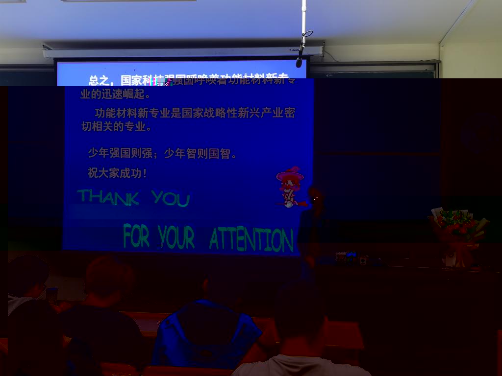 郭春顯教授以“淺談生化傳感與生物醫藥”為題,從學院的人才布局、學科發展入手,通過生活息息相關的健康和材料話題将生物、化學、傳感材料的原理、應用和未來的美好發展前景逐步展開,最後以“自知、自律、創新、從容 ”8個字勉勵大家努力成為科研創新型人才。王筱梅教授從材料科學與工程學科的内涵展開,介紹了新材料的發展狀況、“功能材料”專業的建設發展曆程、《有機光電材料與器件》這一特色課程在人才培養中的重要地位,她寄語青年學生:“少年強則國強;少年智則國智。希望大家規劃好自己,打好人生底色。”劉波教授從他多年從事半導體研究的曆程出發,回顧了一系列核心技術的發展,介紹了大家關注的“卡脖子”技術,展望了信息存儲在數字時代的前景,激勵學生要努力奮鬥,自強不息,争取為我國的科技創新做出貢獻。蔣高喜教授從我和我的工作、我和我的祖國、我和我們的生活、我們的未來四個方面,通過視頻、圖片等方式生動講述了他的求學和科研經曆,同時在講座中滲透了“綠水青山就是金山銀山”“人類命運共同體”“中華民族偉大複興”等思政概念。