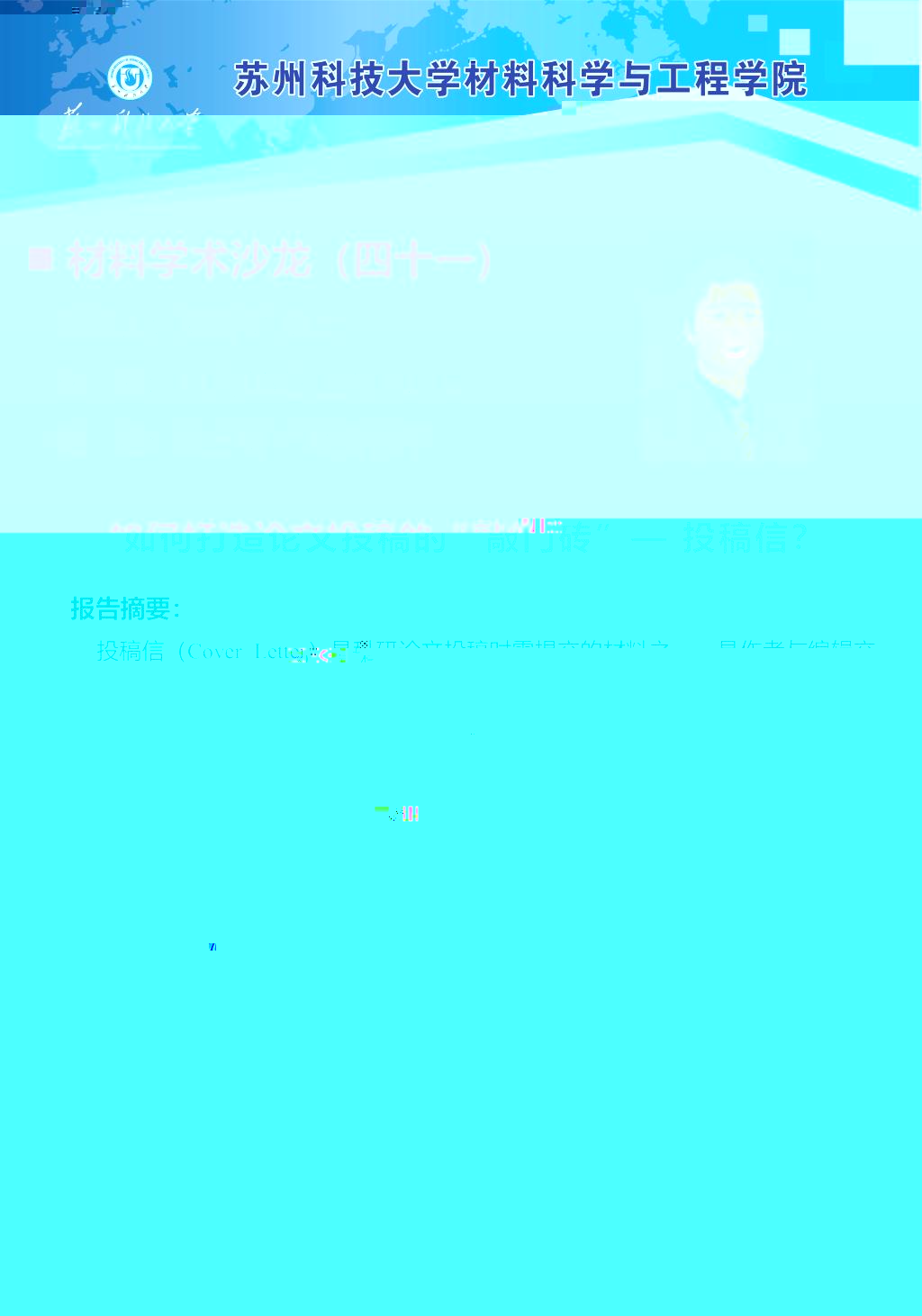 材料學術沙龍四十一:如何打造論文投稿的“敲門磚”— 投稿信?